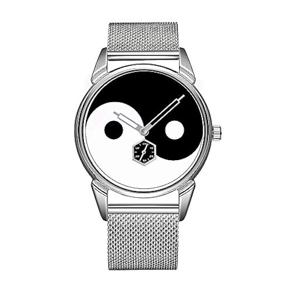 Aimsmode Herrenklocka Silver Rostfritt Stal Vattentat Klocka Herr Topp Marke Herrenklocka Klocka Yin Und Yang Svarta